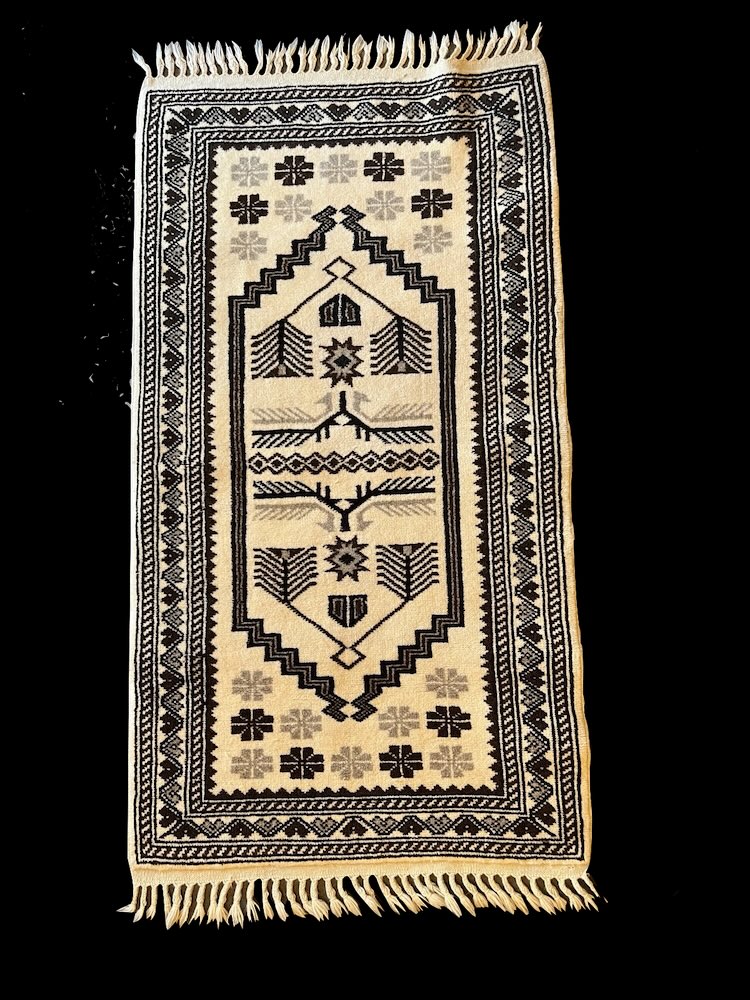 A halı is a type of Turkish rug that has wool pile with a low to medium pile height. They are finished with twisted or knotted fringes and have a durable construction, often with a tactile, slightly irregular surface that shows handcrafted character.